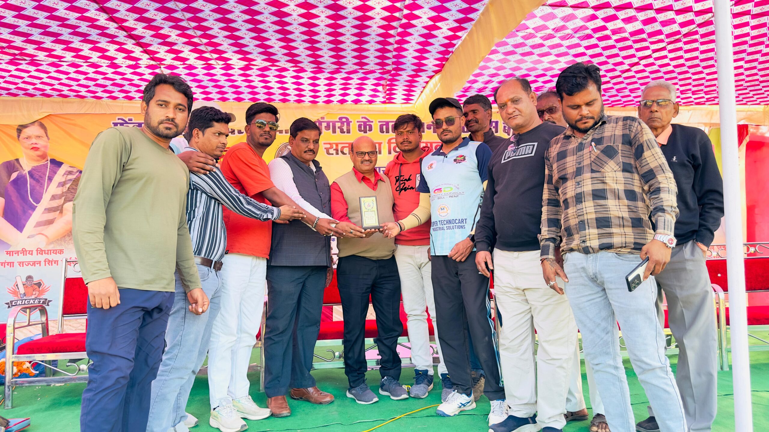 भाजपा नेता राजेंद्र मालवीय व्यापारी संघ के अध्यक्ष सुनील शर्मा जी सहित समिति के संरक्षक समीर पाठक तीर्थराज माथनकर रूपेश साहू दीपक धोटे सिद्धार्थ बिहारे नरेंद्र चौकसे इमरान खान कपूर वर्मा संजय पवार वासु प्रधान रोहित चौहान दुर्गेश यादव बृजेश धुर्वे दीपक नागवंशी अख्तर खान सभी ने खिलाड़ियों को मैन ऑफ द मैच पुरस्कार वितरण किया