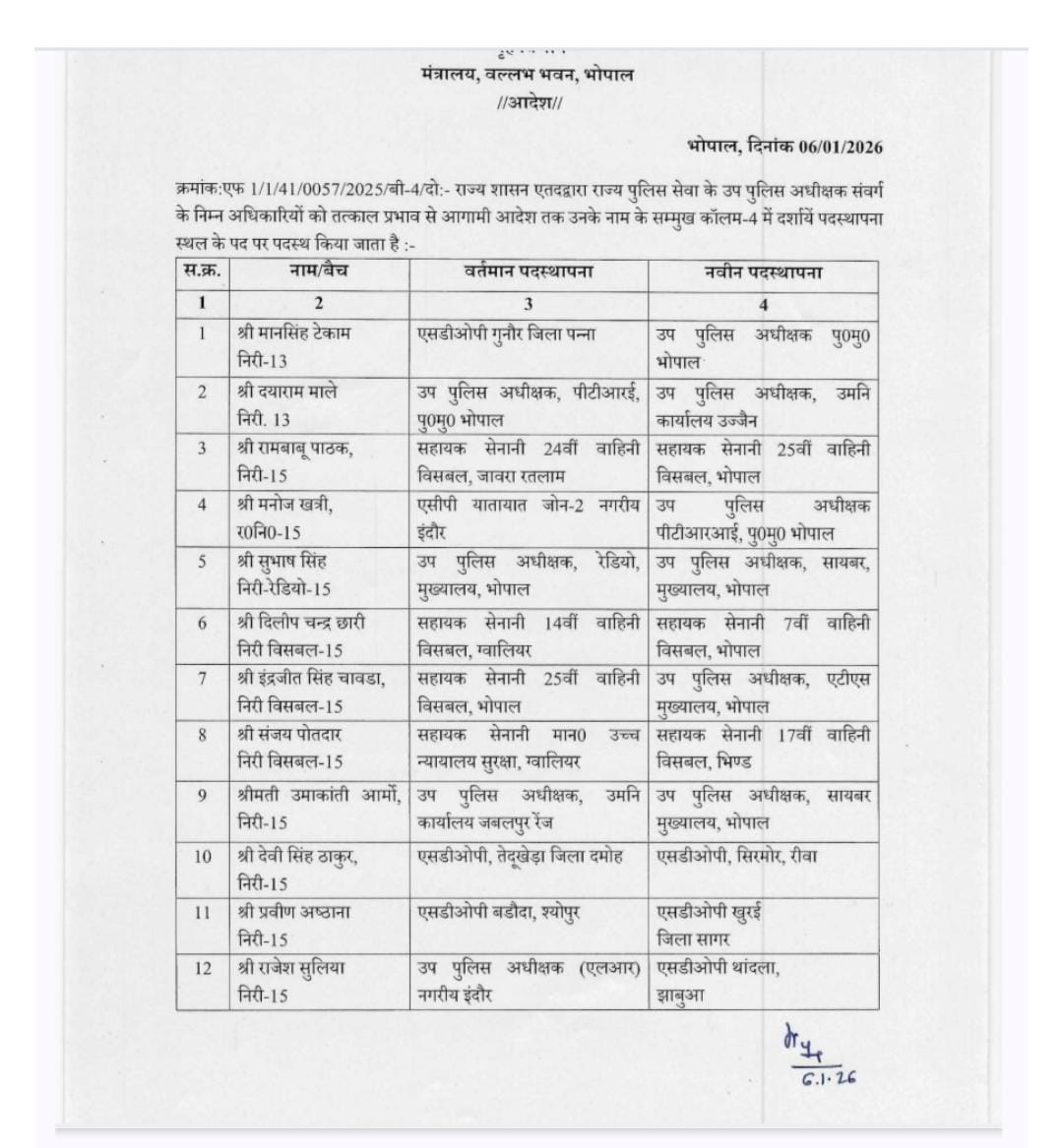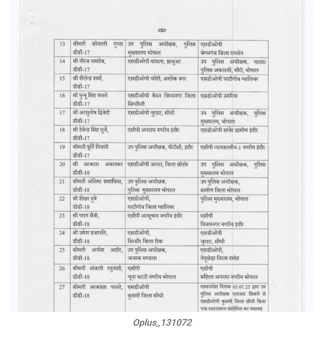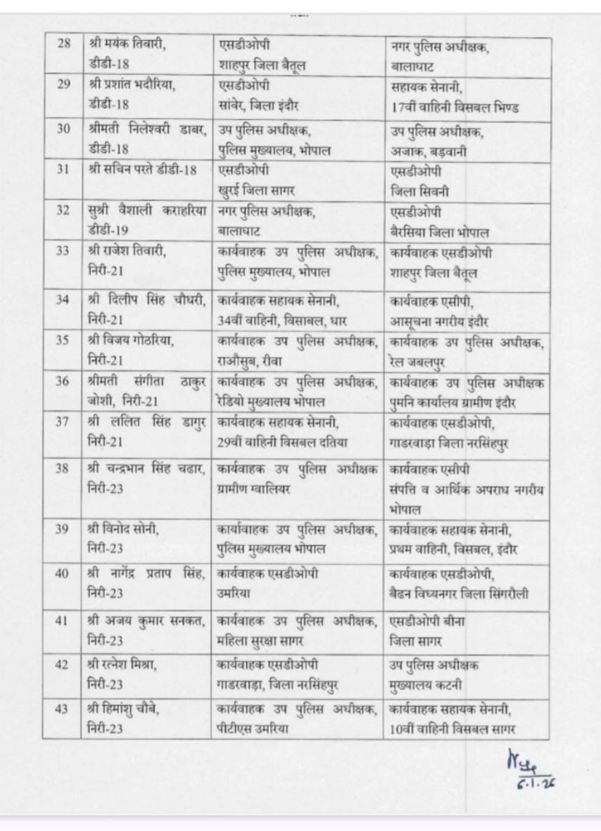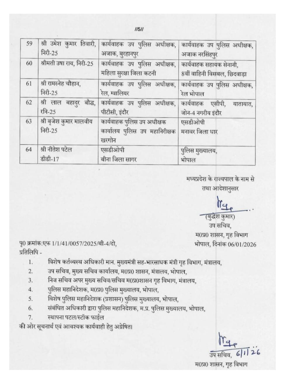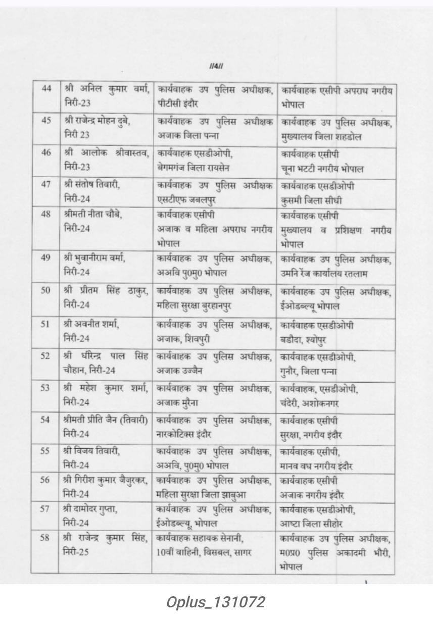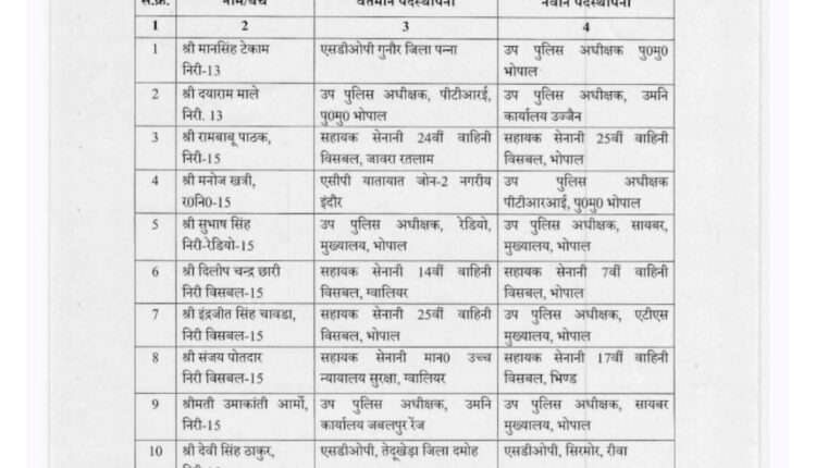 Transfer : पुलिस विभाग में 64 अधिकारियों के ट्रांसफर