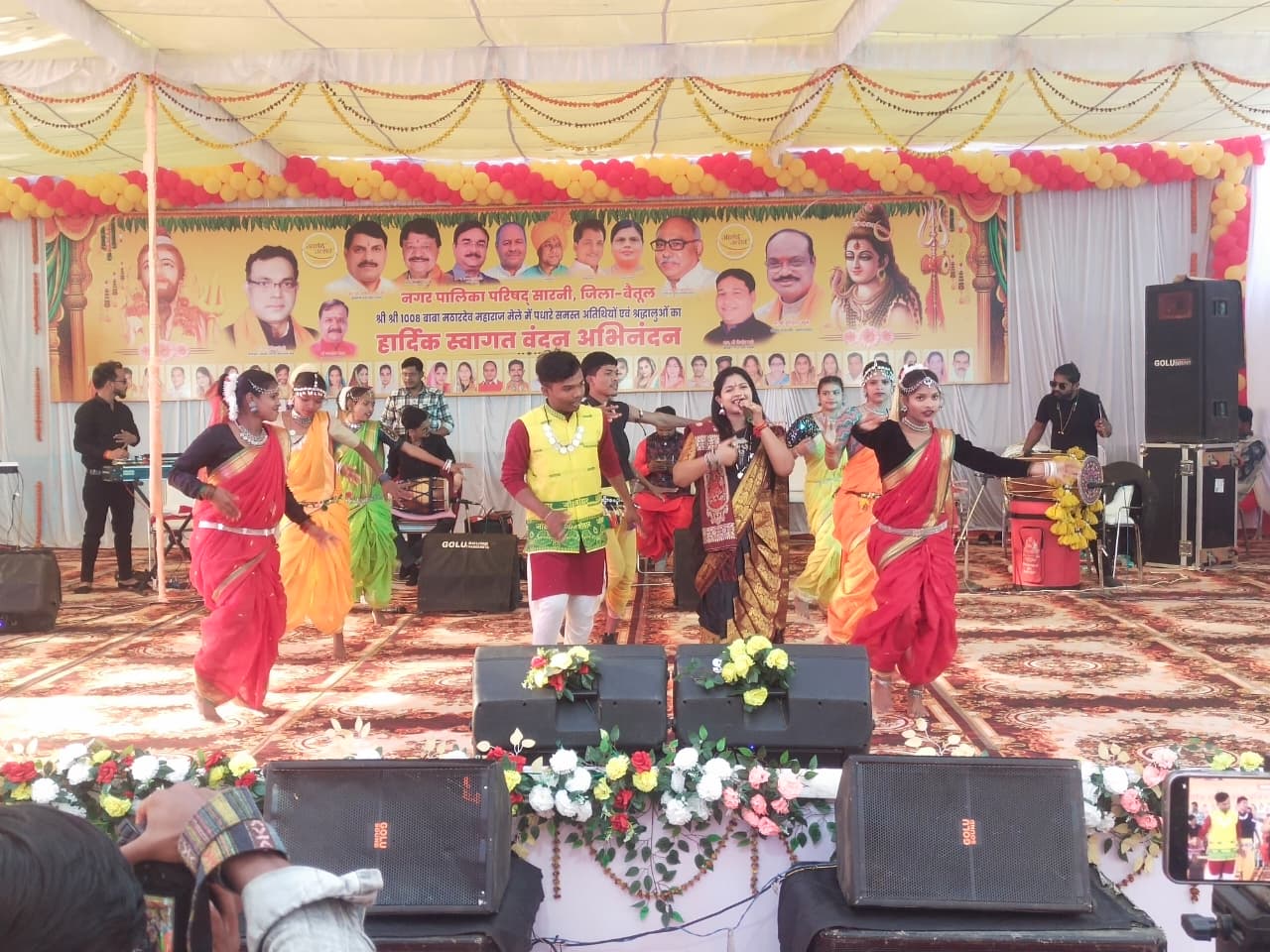 दोपहर 2.30 बजे कार्यक्रम की शुरुआत नगर पालिका अध्यक्ष किशोर बरदे, पार्षद भीम बहादुर थापा, गणेश महस्की, मुख्य नगर पालिका अधिकारी सीके मेश्राम, बैतूल से आए वरिष्ठ पत्रकार नवनीत गर्ग, राजेश भाटिया, हेमंत रघुवंशी, वाजिद खान ने सरस्वती पूजन कर की। लोक संगीत कार्यक्रम की शुरुआत बड़ा देव की स्तुति के साथ हुई। इसके बाद ममता ऊइके ने शिवरात्रि ता महीना ता….गीत प्रस्तुत किया। आकर्षक आदिवासी लोक नृत्य के साथ हुई इस प्रस्तुति ने लोगों को झूमने पर मजबूर कर दिया। लोक गायक श्यामू परते ने भोले बाबा और बाबा मठारदेव पर भी आदिवासी गीत प्रस्तुत किया। बादल इरपाचे द्वारा बैतूल जिला ता हुड़ा धमाका ये वसांगो … प्रस्तुत गीत पर दर्शक खूब झूमे। गायिका आरती परते ने नीवा वंचिना बोली… गीत प्रस्तुत किया। इसपर दर्शक झूमने लगे। ममता ने ये बढ़िया पीली रे पीली…. और लाल लाल साड़ी भी वाली, ओ मेरी साली बाबा मठारदेव मेले में आ जाना गीत गाकर लोगों को डांस करने पर मजबूर कर दिया। ममता ने मंच से उतरकर भजन न किया तो क्या किया… गीत प्रस्तुत किया।