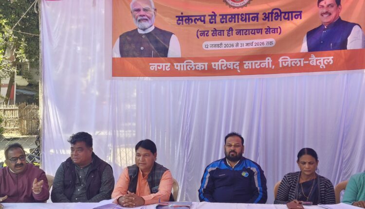सारनी। मध्यप्रदेश शासन के निर्देशानुसार शासन की विभिन्न जन हितैषी योजनाओं का लाम आम लोगों को देने के लिए 12 जनवरी से 15 फरवरी तक संकल्प से समाधान अभियान का आयोजन किया जा रहा है। निकाय क्षेत्र में वार्ड स्तर पर इस हेतु शिविर आयोजित किए जा रहे हैं।
