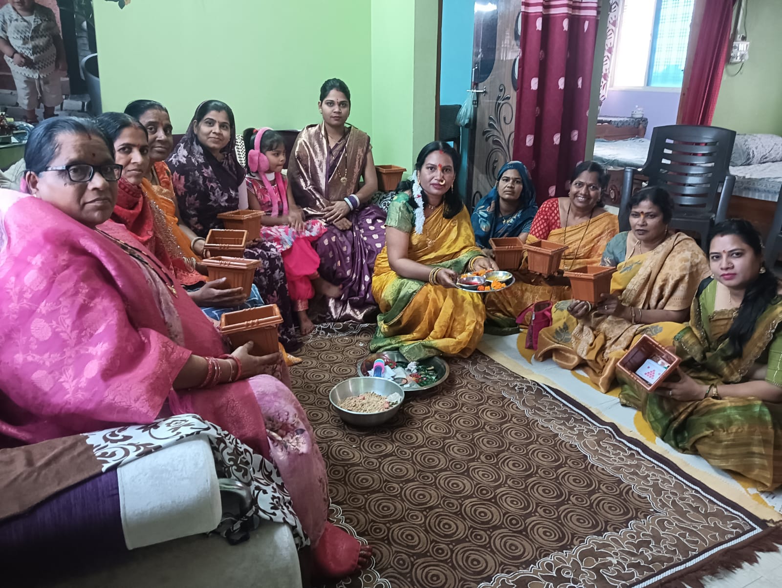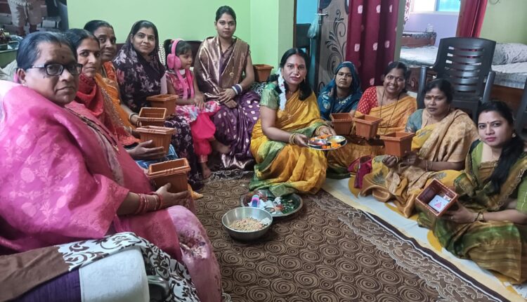 महिलाओं द्वारा हल्दी कुमकुम रखा गया