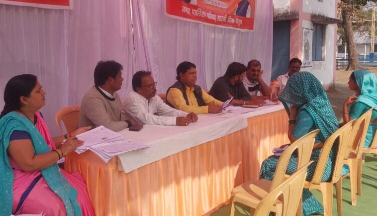 लगाए जा रहे हैं। अभियान के तहत मंगलवार को वार्ड 17 में शिविर का आयोजन किया गया। शिविर में नगर पालिका अध्यक्ष किशोर बरदे, वार्ड पार्षद गणेश महस्की, प्रभारी जीएस पांडे, राजेश बगाहे, योगेश धोटे, लक्ष्मण पंडाग्रे, रंजीत डोंगरे समेत अन्य लोग उपस्थित थे। शिविर में विभिन्न योजनाओं से संबंधित 25 आवेदन प्राप्त हुए। इनका त्वरित निराकरण कराया जा रहा है। संकल्प से समाधान अभियान के तहत 15 फरवरी तक लगातार शिविरों का आयोजन किया जाएगा।