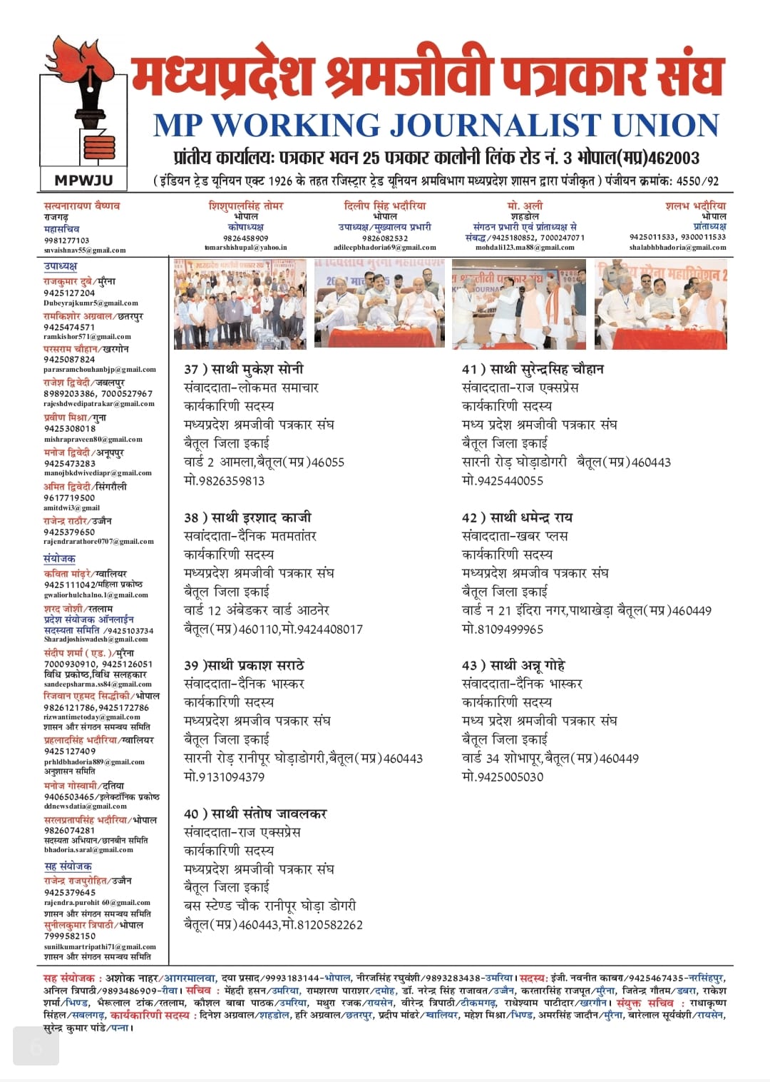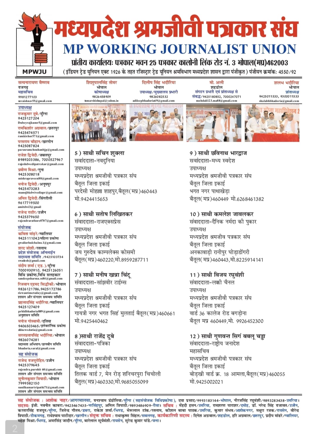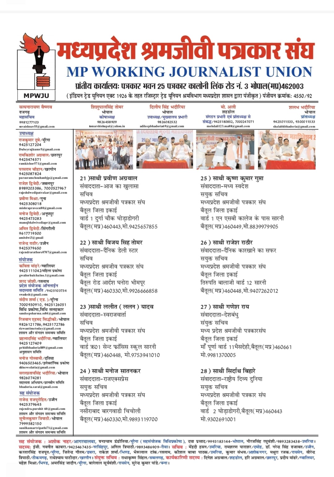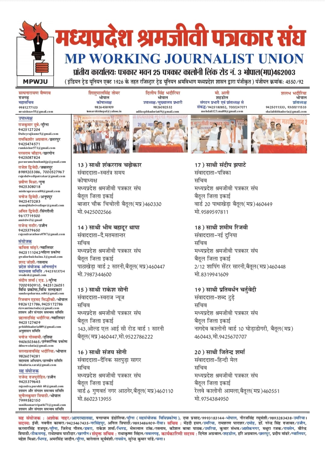संजय सोनी, शमीम रिजवी, जितेन्द्र शर्मा, भीम बहादूर थापा, प्रवीण अग्रवाल, प्रतिवर्धन चर्तुवेदी, राकेश सोनी, विजय सिह तोमर, ललित ललन यादव, संदीप झपाटे जिला सचिव बने