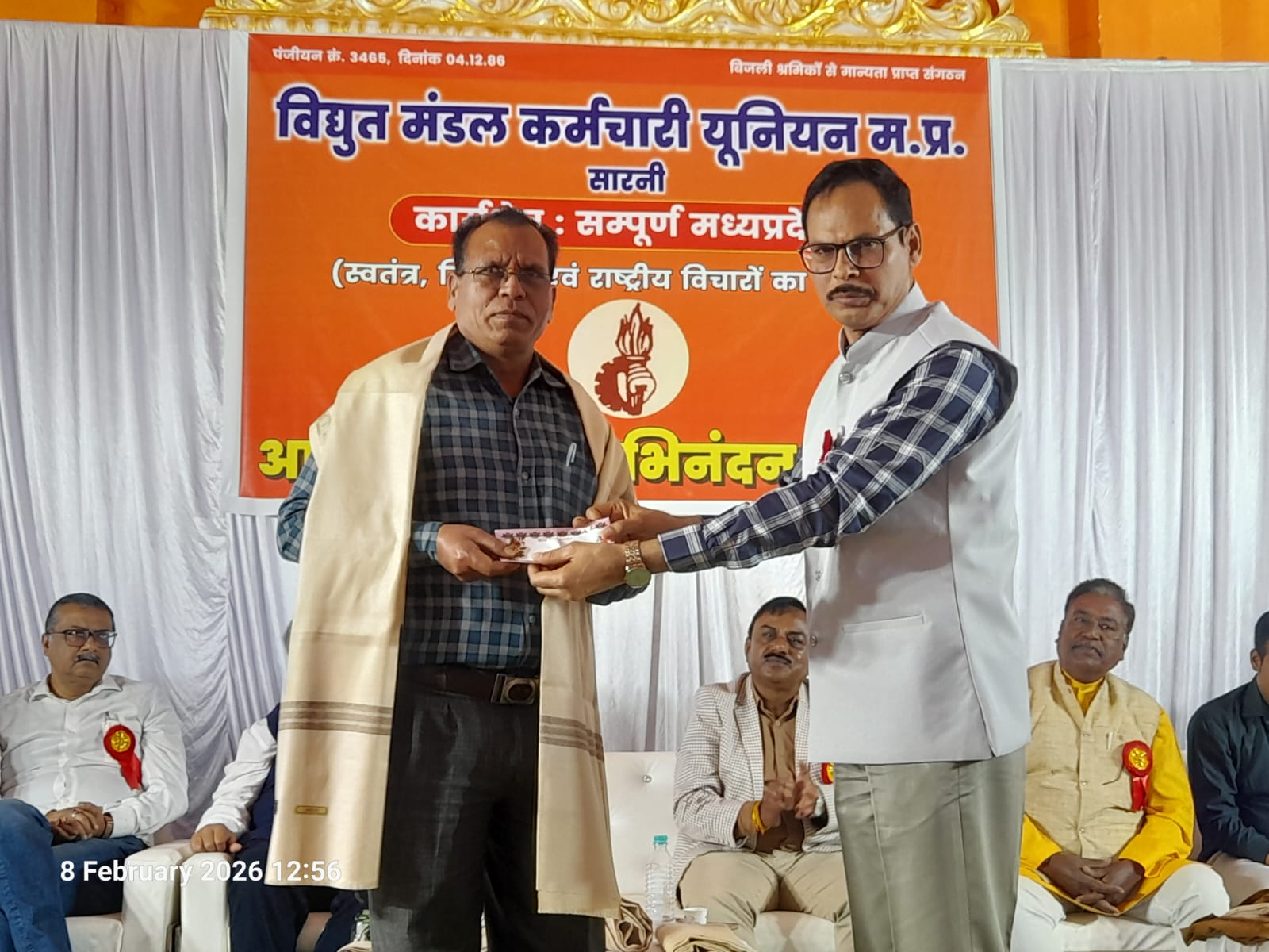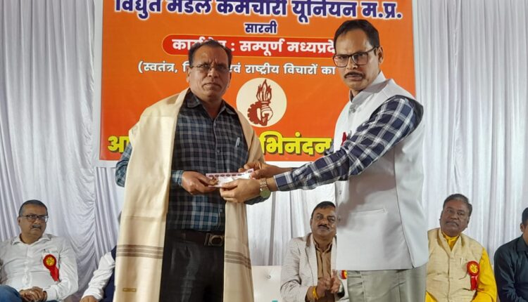 सारनी l विद्युत मंडल कर्मचारी यूनियन मध्यप्रदेश का सम्मान समारोह मंगल भवन के सभागार में आयोजित किया गया। यूनियन के क्षेत्रीय महामन्त्री अंबादास सूने ने जारी प्रेस विज्ञप्ति में बताया कि दिसम्बर 2016 से लगातार पत्राचार कर शासकीय पॉलीटेक्निक महाविद्यालय बैतूल के प्राचार्य डॉक्टर भदौरिया के मार्गदर्शन में और बैतूल विधायक हेमंत खंडेलवाल के प्रारंभिक सहयोग के कारण और सांसद दुर्गादास