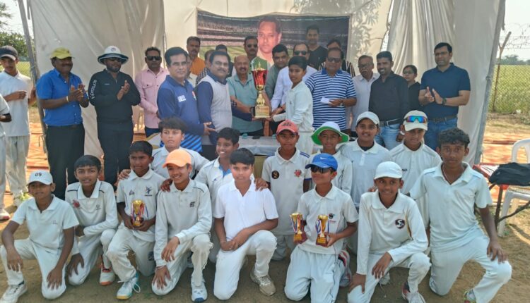 स्वर्गीय जे एल वर्मा ट्रॉफी इंटर डिस्ट्रिक्ट अंडर-13 प्रतियोगिता का फाइनल नर्मदापुरम और बैतूल के मध्य एमपीसीए ग्राउंड पर खेला गया।जिसमें नर्मदापुरम ने पहली पारी में बढ़त के आधार पर बैतूल को हराया। नर्मदा पुरम संभाग क्रिकेट संघ के मानसेवी सचिव श्री प्रदीप तोमर ने बताया कि नर्मदापुरम ने टॉस जीतकर पहले बल्लेबाजी करते हुए भव्य गोठी के 110 रनों की शतकीय पारी एवं प्रज्ञान थापक 52 रनों की मदद से 277 रन बनाकर ऑल आउट हुई।बैतूल की ओर से सक्षम महाले ने 7 विकेट हासिल किए थे।लक्ष्य का पीछा करते हुए बैतूल की टीम 197 रनों पर ऑल आउट हो गई।जिसमें