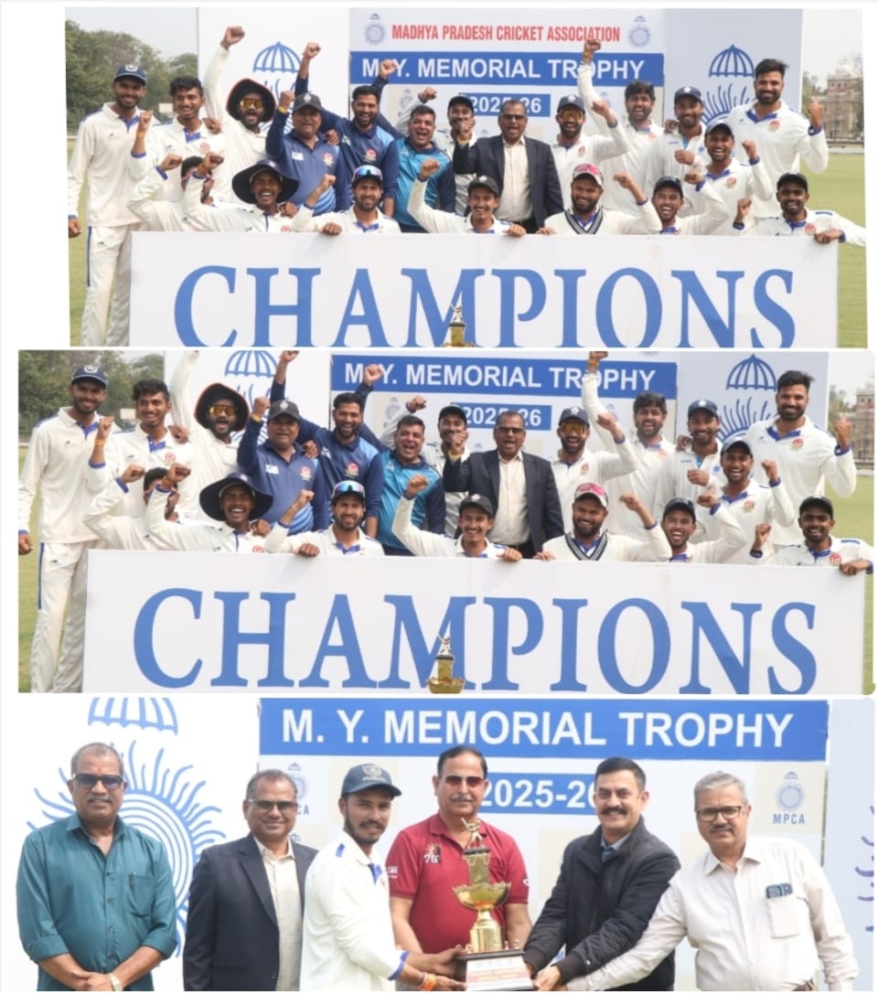 आशीष उघड़े जिला नर्मदापुरम। मध्यप्रदेश क्रिकेट एसोसिएशन द्वारा आयोजित मेंस सीनियर महाराजा यशवंतराव ट्रॉफी पर नर्मदापुरम संभाग ने पुनः अपना दबदबा कायम रख विजयश्री प्राप्त की है।पॉइंट्स टेबल के आधार पर शीर्ष स्थान की टीम इंदौर और नर्मदापुरम के मध्य प्रतियोगिता का फाइनल मुकाबला इंदौर के डेली कॉलेज ग्राउंड पर खेला गया।नर्मदापुरम संभाग क्रिकेट संघ सचिव प्रदीप तोमर के अनुसार नर्मदापुरम टीम ने टॉस जीतकर पहले बल्लेबाजी कर महज 174 रन बनाकर ऑलआउट हो गई।जिसमें सर्वाधिक यश दुबे 55 रन बनाए। इंदौर की ओर से सारांश सुराना ने 5 विकेट और आकाश राजावत ने 4 विकेट हासिल किए।जवाब में इंदौर की पूरी टीम ने 255 रन बनाकर ऑल आउट हुई। सारांश सुराना 57 रन,सचिन जांगिड़ 46 रन और ऋषभ चौहान 35 रन का योगदान दिया जिसके कारण इंदौर ने 81 रनों की बढ़त पहली पारी में हासिल कर ली थी लेकिन