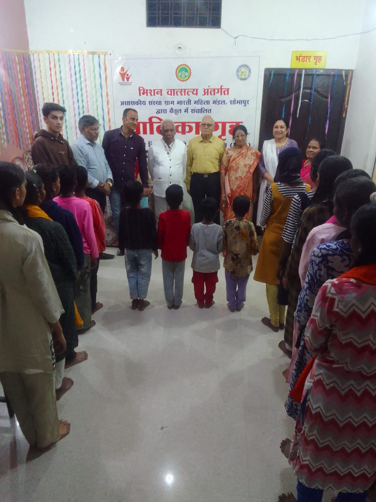 आज दिनांक 20 फरवरी 2026 को ग्राम भारती महिला मंडल द्वारा संचालित बालिका गृह बैतूल में एक अत्यंत भावपूर्ण एवं आनंदमय कार्यक्रम का आयोजन किया गया। इस अवसर पर एडवोकेट श्री भारत चंद्र राका एवं श्रीमती कंचन देवी राका जी तथा श्री राजीव खंडेलवाल एवं श्रीमती राखी खंडेलवाल जी ने अपनी विवाह वर्षगांठ बालिकाओं के साथ मिलकर सादगी, प्रेम और आत्मीयता के साथ मनाई। कार्यक्रम के दौरान बालिकाओं के साथ केक कटिंग, शुभकामनाओं का आदान-प्रदान एवं सांस्कृतिक वातावरण में उत्सव मनाया गया। इस अवसर पर अतिथियों द्वारा बालिकाओं को उपहार स्वरूप कपड़े, मिठाइयाँ एवं नमकीन वितरित किए गए, जिससे बालिकाओं के चेहरों पर खुशी और उत्साह साफ
