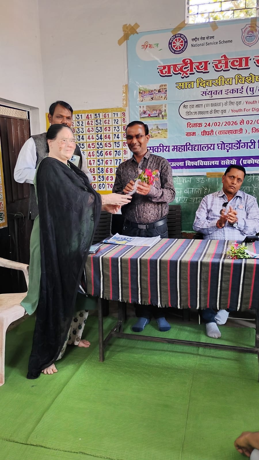 खेती परियोजना कार्य हेतु कुशलता जैविक कृषि फार्म सुखाढाना गए, वहां से 2:00 बजे वापस आए उसके बाद शिविर में जिला बैतूल से आए जिला संगठन डॉ जी पी साहू डॉ शेषकर डॉ सरले द्वारा कैंप का निरीक्षण किया गया एवं व्यवस्था देखी गई बौद्धिक सत्र में संबोधित करते हुए वे डा साहू ने कहा कैंप छात्र को के व्यक्तित्व को परिपक्व कर निखारता है, और समुदाय से कनेक्ट होना सिखाता है, प्राचार्य डॉ साहबराव झरबडे सर की उपस्थिति में राष्ट्रीय सेवा योजना राष्ट्रीय सेवा योजना कार्यक्रम अधिकारी पुरुष इकाई को पुरुष इकाई कार्यक्रम अधिकारी प्रोफेसर राकेश सिसोदिया एवं महिला इकाई प्रभारी डॉ यासमीन जिया की उपस्थिति में दल नायक पीयूष एवं दल नायिका कु रोशनी धुर्वे द्वारा अतिथियों का स्वागत किया गया कार्यक्रम में अतिथियों द्वारा मार्गदर्शन