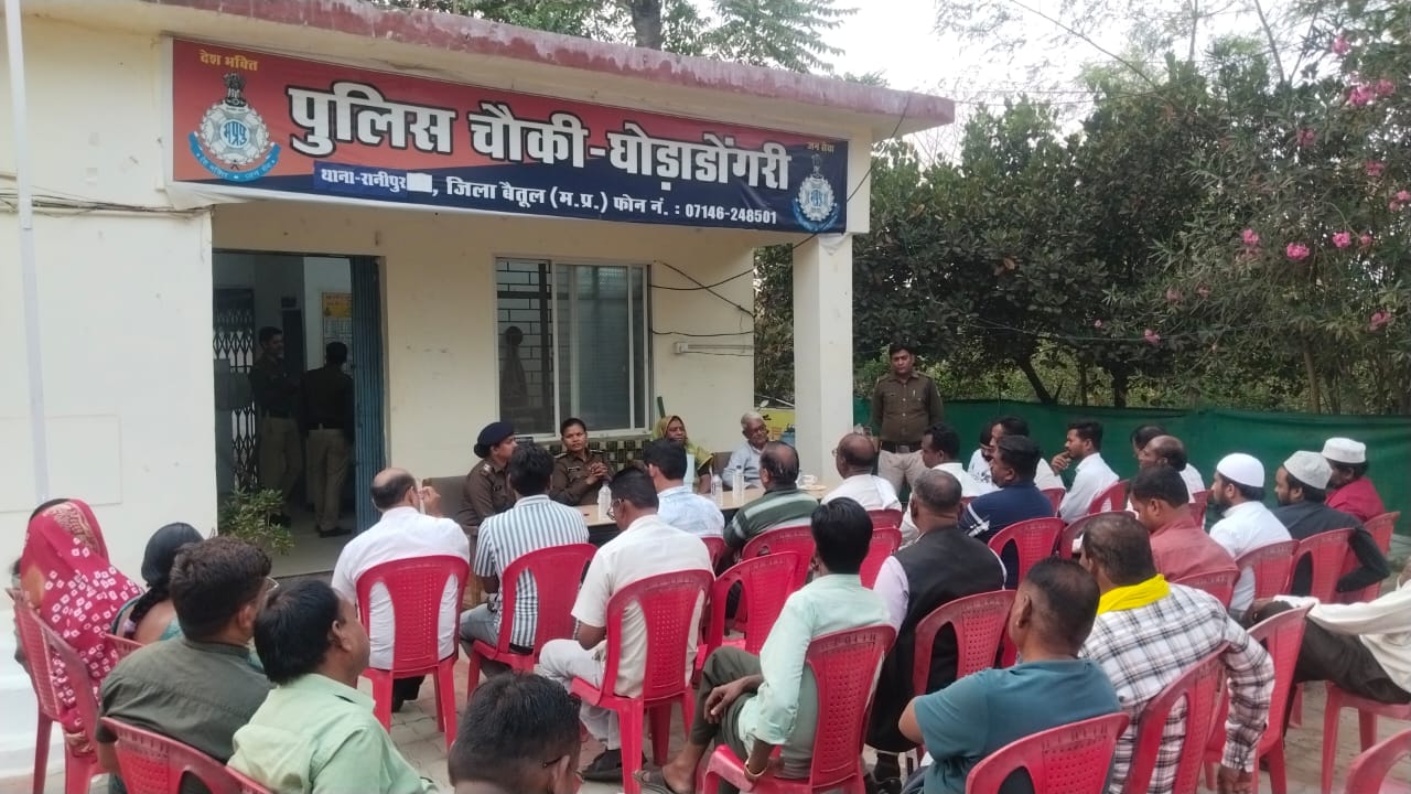 घोड़ाडोंगरी पुलिस चौकी घोड़ाडोंगरी में होली त्यौहार को लेकर शांति समिति की बैठक आयोजित की गई । बैठक में होली त्यौहार के माहौल को लेकर नगर वासियों से पुलिस चौकी प्रभारी आम्रपाली डहाड़ ने चर्चा की ।