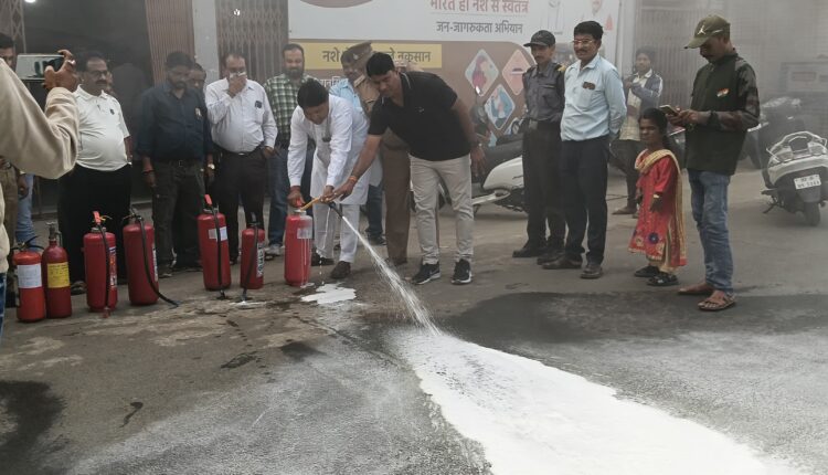 शुक्रवार को नगर पालिका कार्यालय में नगर पालिका अध्यक्ष किशोर बरदे, वाहन शाखा प्रभारी केके भावसार, सतपुडा प्लाट के उप अग्निशमन अधिकारी हरिराम रघुवंशी, लीडिंग फायर मैन राहुल सालोडे, तकनीकी विशेषज्ञ (फायर) अजय डागी, महेंद्र, गोकुल नपा की ओर से हरिओम कुशवाहा, समेत अन्य लोगों की उपस्थिति में प्रदर्शन किया। सतपुडा प्लांट एवं नपा के फायर फाइटिंग विभागों द्वारा संयुक्त रूप से प्रदर्शन किया गया। इस अवसर पर को नगरपालिका कार्यालय सारनी के समस्त कर्मचारियों को प्राथमिक अग्नि सुरक्षा एवं सेफ्टी का प्रशिक्षण दिया गया। उन्हें प्राथमिक अग्निशमन यत्रों के उपयोग के बारे में विस्तार से जानकारी दी गई।