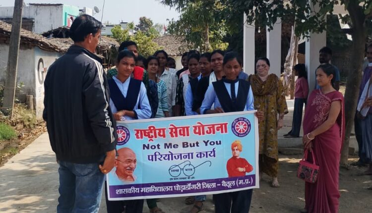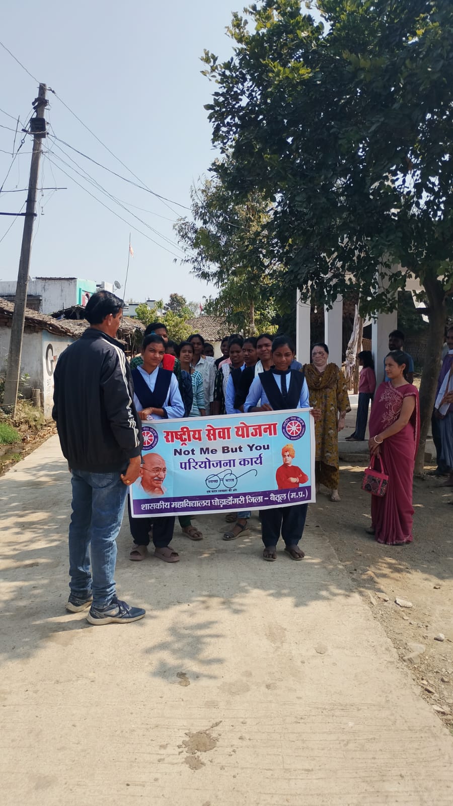 शासकीय महाविद्यालय घोड़ाडोंगरी में राष्ट्रीय योजना के सात दिवसीय विशेषशिविर का आयोजन पीपरी किया गया है जिसका आज तीसरा दिन था। हमारा परियोजना कार्य का शीर्षक क स्वच्छता एवं स्वास्थ्य था। जिसके अन्तर्गत पीपरी ग्राम में हमने आज स्वास्थ्य और स्वच्छता परियोजना कार्य हेतु 11:00 रैली निकाली। स्वच्छता एवं स्वास्थ्य के सम्बंध में जागरूक किया एवं ग्रामवासियों को गंदगी ना फैलाने एवं साफ-सफाई -रखने के लिए प्ररित किया स्वयं सेवक सेविकाओं द्वारा चौपाल की साफ-सफाई की गई। रैली से शिविर मे आने के पश्चात सभी ने अपने वहाँ से शिविर मे लौटकर आपने कार्य विभाजित किए एवं सब अपने कार्य में लग गए।