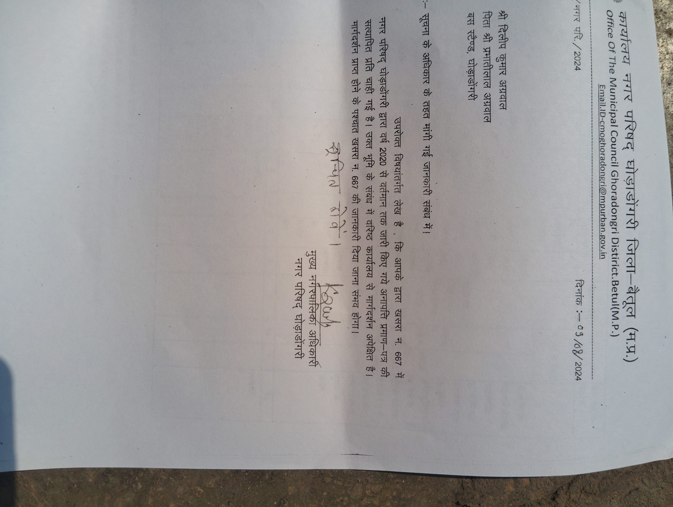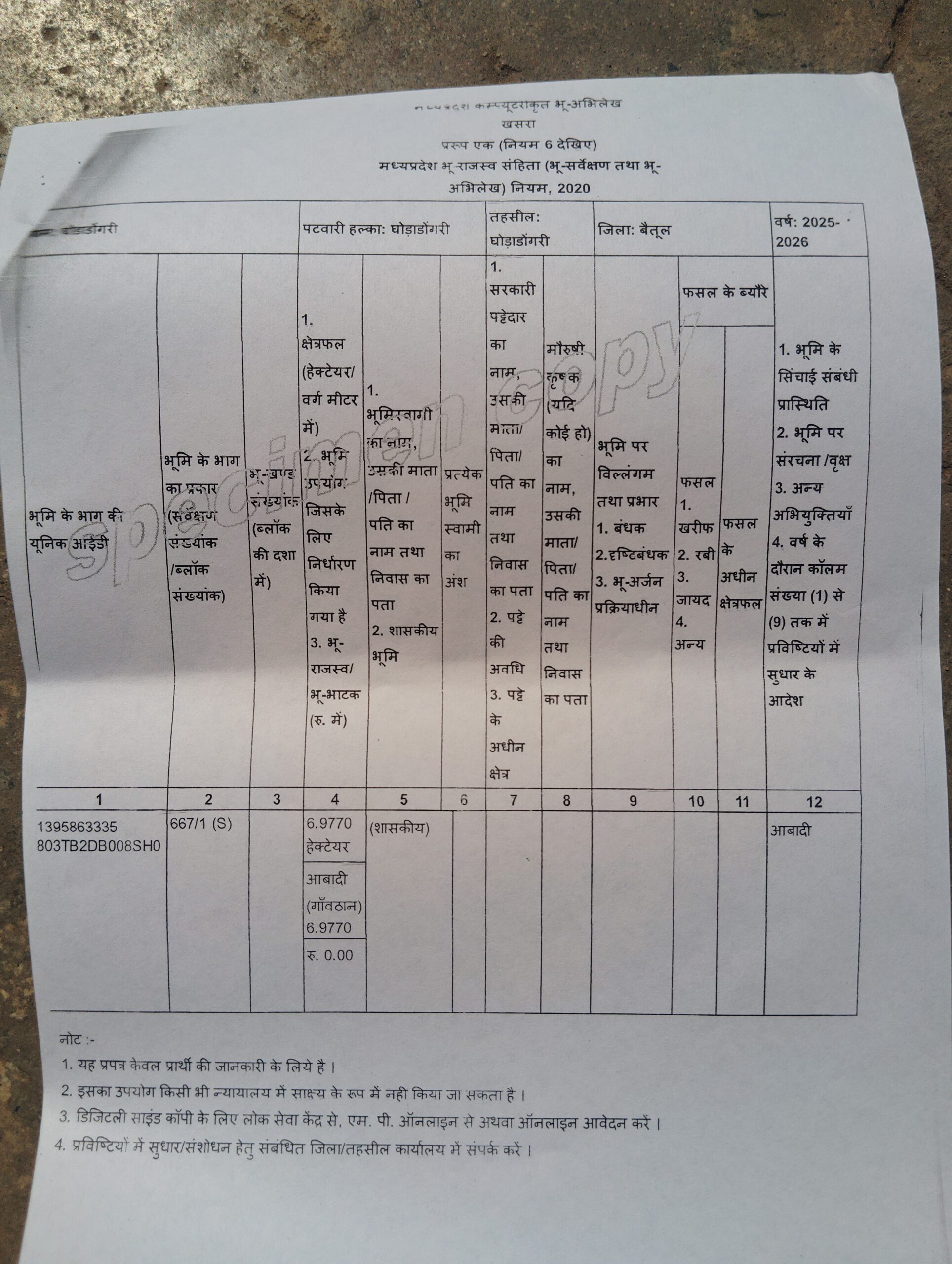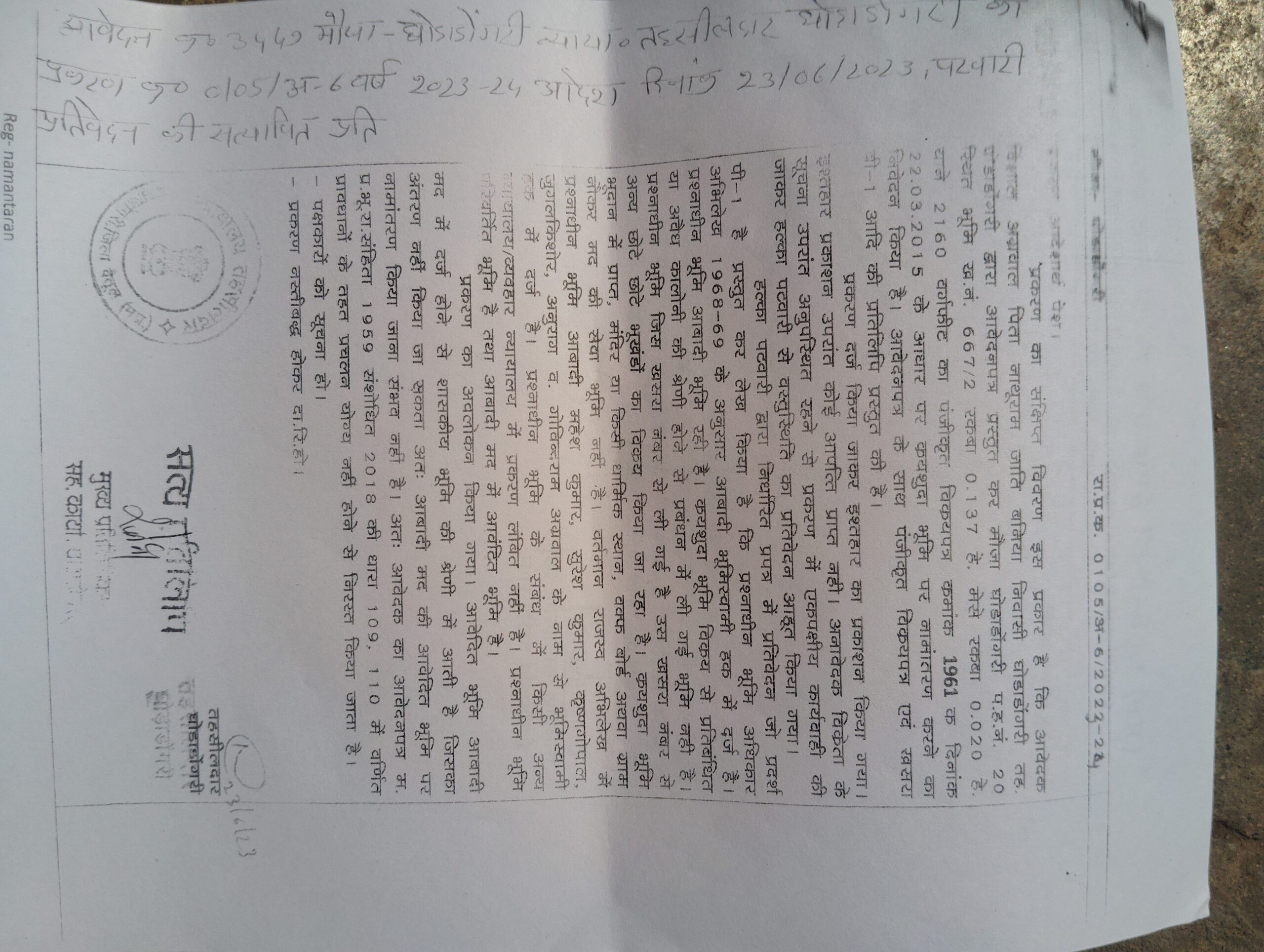 राजस्व रिकॉर्ड में देखने पर आबादी भूमि 667 शासकीय भूमि के रूप में दर्ज है और फिर भी नगर परिषद घोड़ाडोंगरी में बैठे जिम्मेदार अधिकारी कर्मचारी इस शासकीय भूमि की हो रही रजिस्ट्री के लिए बाकायदा एनओसी जारी कर रहे हैं और नामांतरण भी कर रहे हैं लेकिन जिनका सौदा पट जाये।
