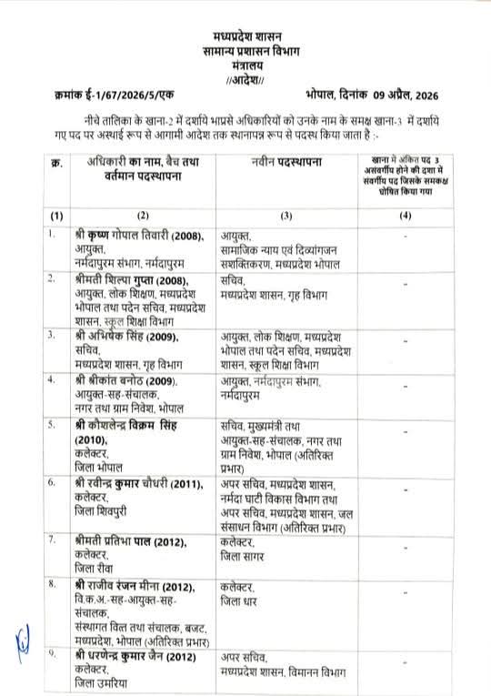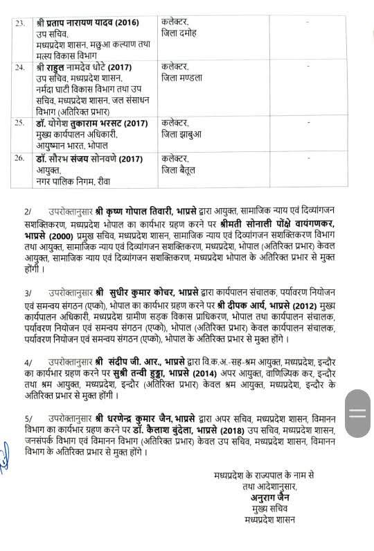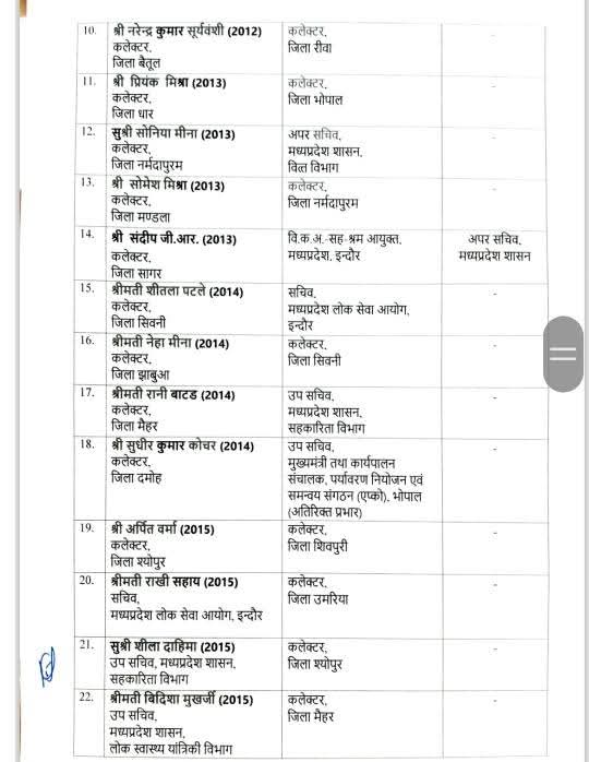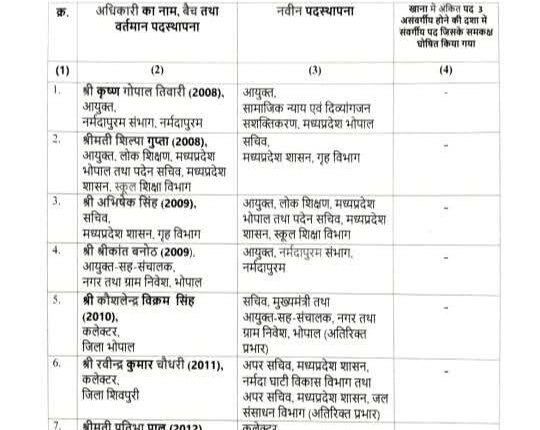 बैतूल कलेक्टर सहित 26 अधिकारियों के ट्रांसफर