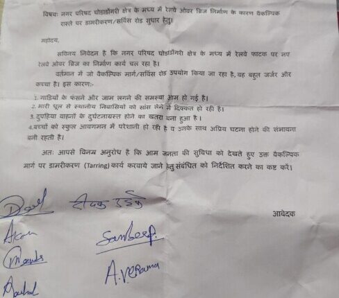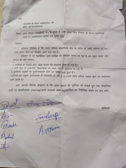 भाजपा नेता दीपक उईके ने भाजपा प्रदेश अध्यक्ष श्री हेमंत खंडेलवाल से भेट कर इस वैकल्पिक मार्ग में डामरीकरण करवाने की मांग की जिस पर भाजपा प्रदेश अध्यक्ष ने गंभीरता से लेकर उचित कदम उठाए जाने का आश्वासन दिया साथ दी केंद्रीय मंत्री श्री दुर्गादास उईके ने भी दूरभाष पर ब्रिज कार्पोरेशन के उच्च अधिकारियों से मार्ग में डामरीकरण करने की बात कही और इसमें आ रही तकनीकी दिक्कतों से अवगत करवा कर उचित कदम उठाए जाने के निर्देश दिए